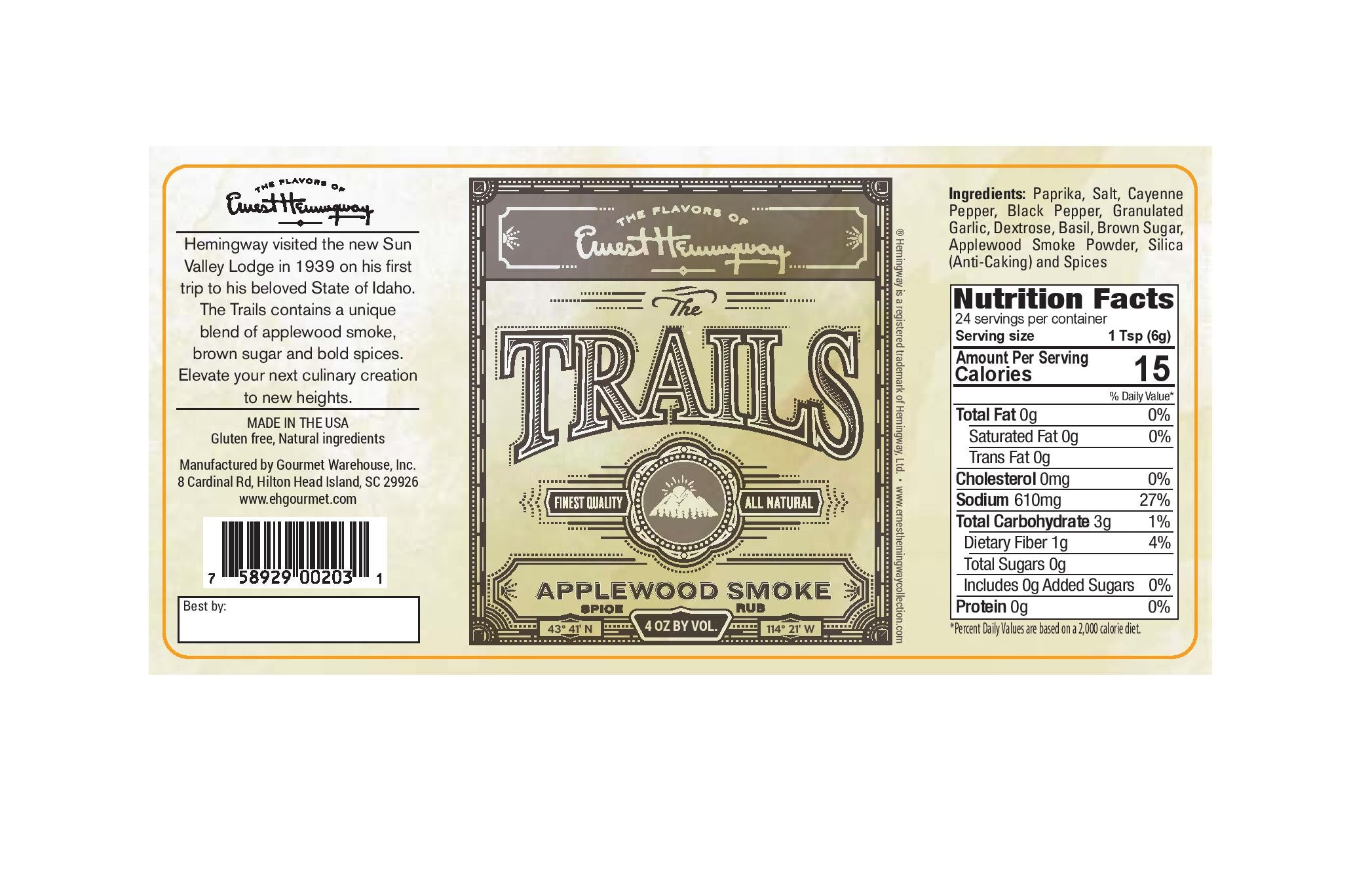 Our Trails Applewood Smoke Spice captures the spirit of Sun Valley’s rugged mountain landscape with its rich, smoky flavor and subtle heat. Featuring the natural depth of applewood smoke blended with just the right touch of spice, this versatile seasoning brings a warm, outdoorsy flavor to beef, chicken, pork, or fish.
